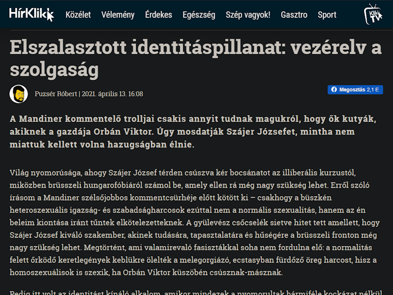 Évek óta figyelem Puzsér Róbert tevékenységét. S alapvetően pozitívan ítélem meg. Schiffer András mögött talán ő a kettes számú ellenzéki megmondóember, aki úgy ellenzéki, hogy közben a ballib kurzussal is szemben áll. Legalábbis ez így volt, míg Puzsér meg nem házasodott.